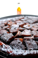 Vinaigre balsamique, cassonade et miel caramélisent parfaitement le potiron ce qui lui ôte sa jolie couleur orangée. Au profit de cette façon de le cuisiner, le caramel adoucit plus encore la finesse en bouche du potiron. Associé à la marinade du saumon fumé, la couleur peut apparaître au final déroutante mais là est bien la caractéristique du tatin. Observez les gros plans des cubes de potiron ... le fondant au centre est conservé, seule une fine pellicule recouvre et caramélise l'ensemble de la tarte. L'association potiron-saumon est très agréable : le fumé du saumon relève la douceur du potiron. Aventuriers, je vous conseille l'expérience.