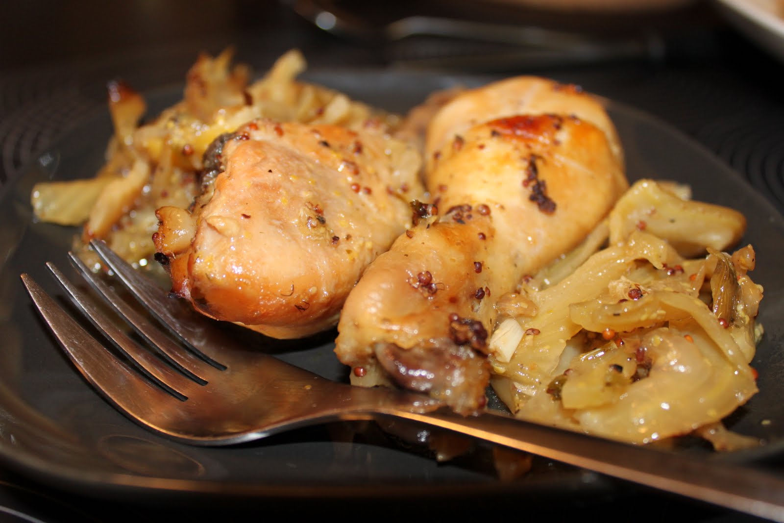 La réussite de ce plat repose à mon avis sur la "caramélisation" du fenouil. Si vous parvenez à atténuer son parfum tout en le diffusant au coeur même de la viande (le poulet s'y prête très bien, il absorbe toutes les saveurs), vous obtiendrez un plat délicieusement parfumé. Ne surtout pas oublier la coriandre et choisissez bien votre moutarde !