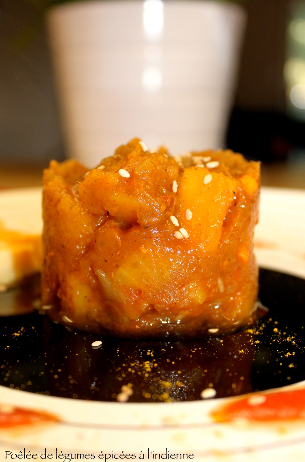 Laissez mijoter à feu doux pendant une bonne heure et demie ( pour ma part, j'ai laissé cuire le tout 2 bonnes heures ). Néanmoins, les pdt et potiron peuvent parfaitement être précuits à la vapeur avant de les mettre dans les épices du wok.