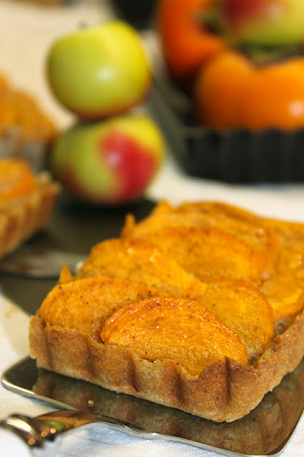mmm, ele est très appétissante cette tarte , ça me donne des idées, j'ai pleins de kakis qui viennent du jardin de mes parents et je sais pas trop quoi en faire!! merci