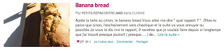Au départ, je devais préparer un petit truc à emporter pour une soirée entre amis ( ou presque ... ) et puis j'ai eu un doute terrible sur ma tarte au citron au dernier moment ( héhé ! elle n'est pas belle l'excuse pour se l'empiffrer toute seule la petite merveille ? Môsieur .. il n'aime pas, pour une fois, tout pour moi. ) alors comme une bonne expat vivant aux US, j'ai fait un banana bread ( aussi parce que j'avais 4 bananes presque pourries ... j'ai dit presque, je n'ai quand même pas refilé un gâteau moisi, on m'a même dit qu'il était " delicious ", alors ! et que je rêvais d'en faire un ).