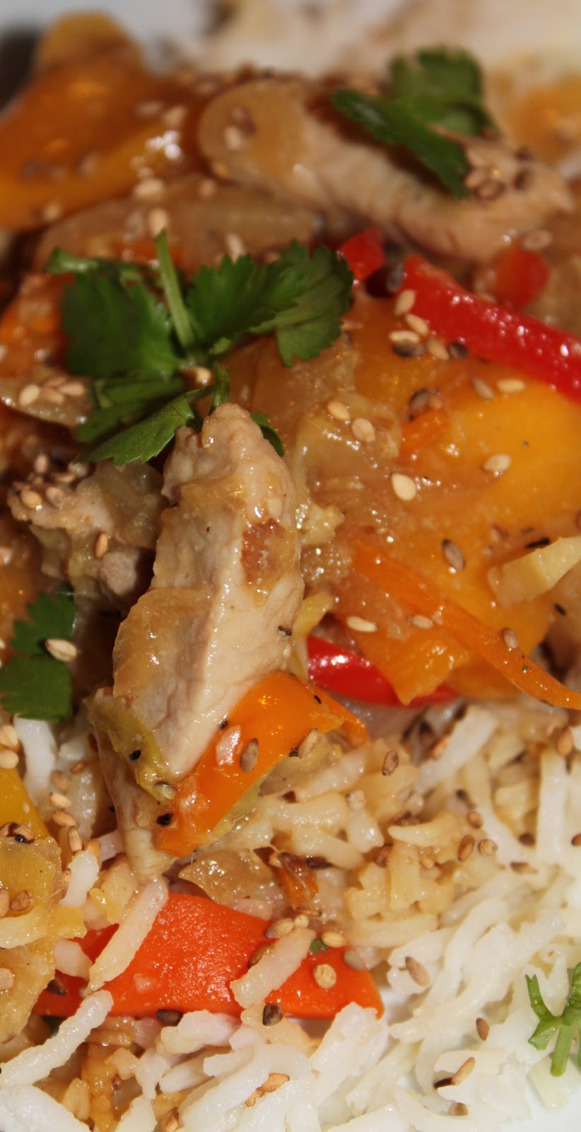 De traditionnels ingrédients de la cuisine asiatique, tels que la sauce soja, le vin de riz ou le gingembre, se mêlent à merveille à la douceur fruitée des quartiers de pêches jaunes pour faire de ce plat un dîner savoureux.