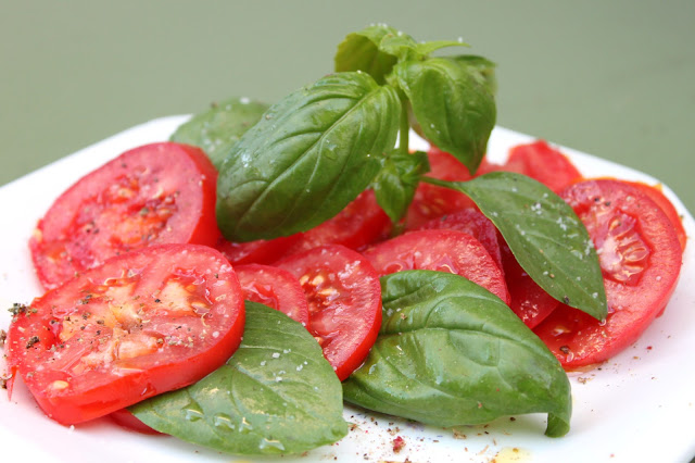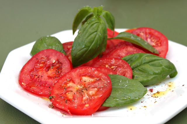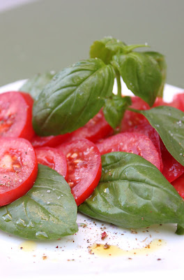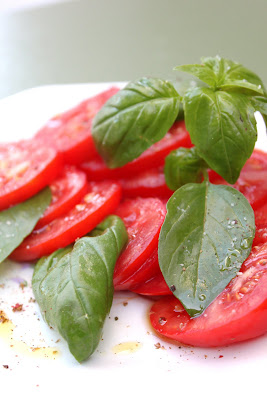 y a rien de meilleur qu'une bonne salade de tomates bien goûteuses avec du basilic frais et de l'huile d'olive! surtout en France on est gâté... moi aussi ca me manque ces bons aliments a Londres....