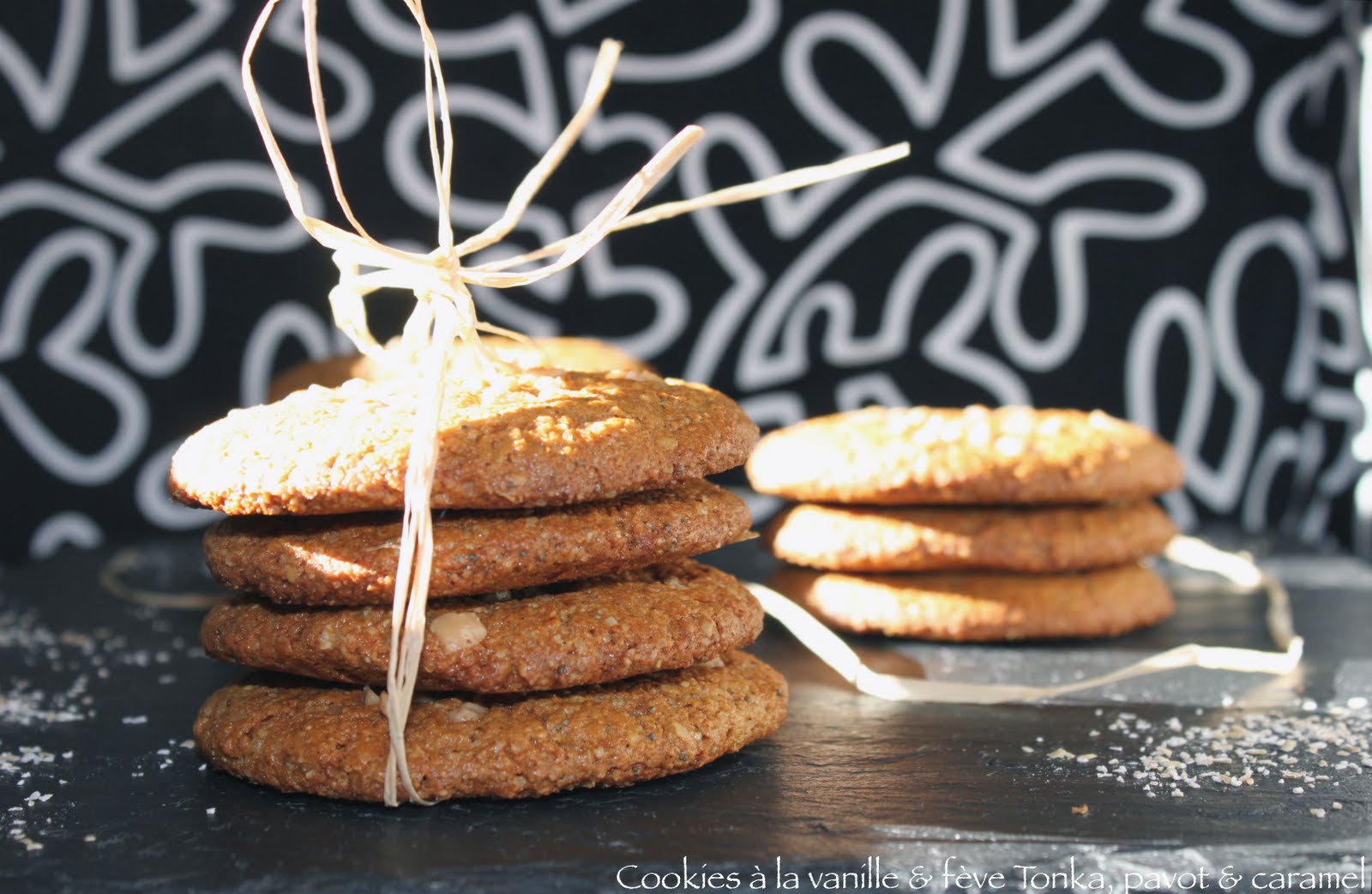 Cookies à la vanille & fève Tonka, graines de pavot & pépites de caramel