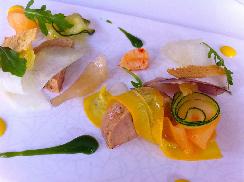 Ile de foie gras à peine fumé à la tourbe, Melon,