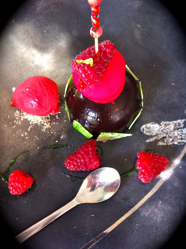 chocolat, macaron & sorbet framboise