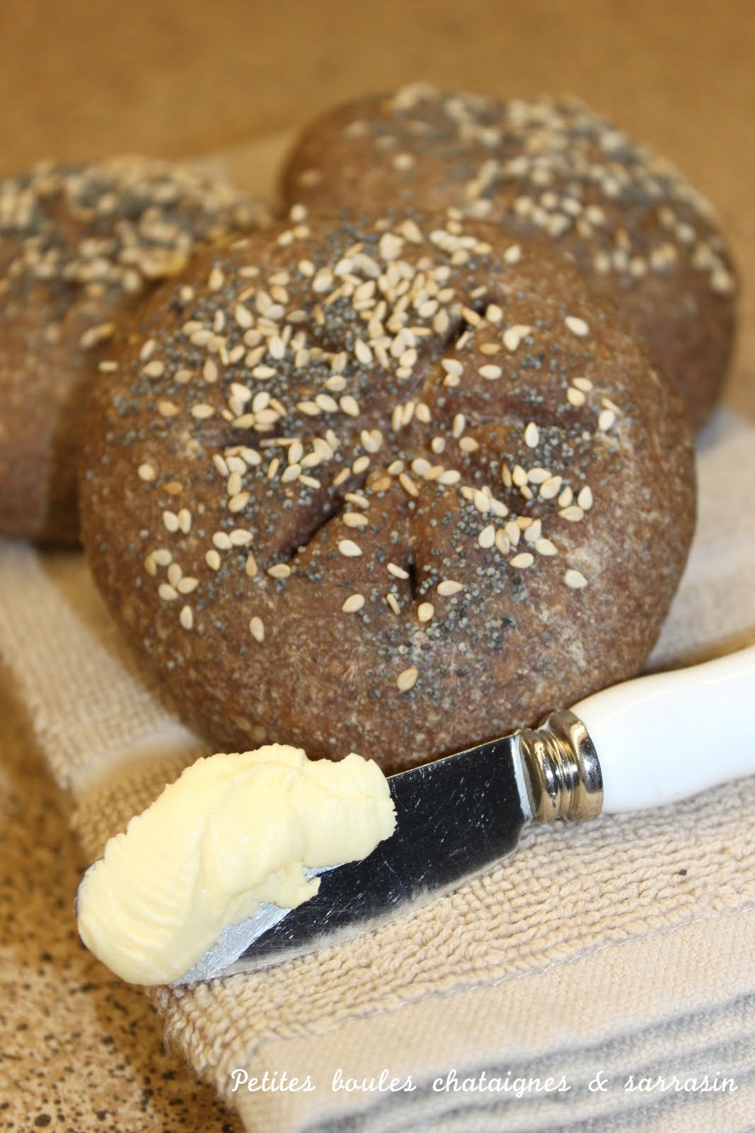 Déclinaison de petites boules châtaignes & sarrasin.