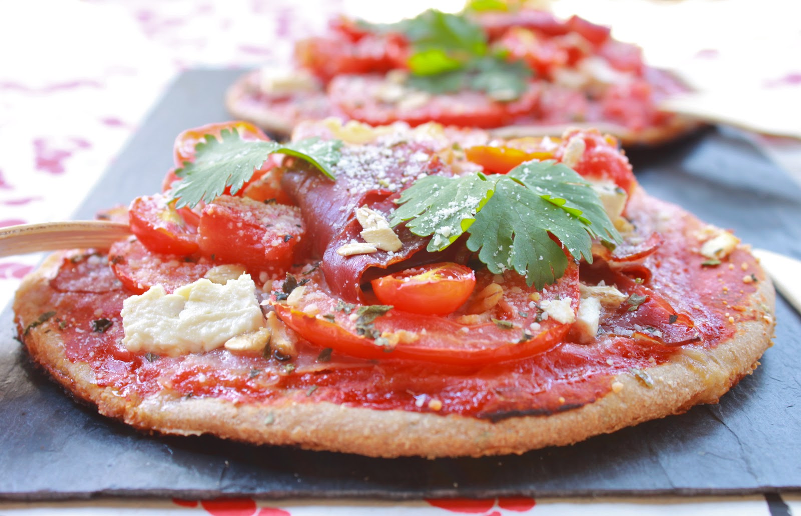 Tarte fine tomate, feta & prosciutto { Facon pizza }